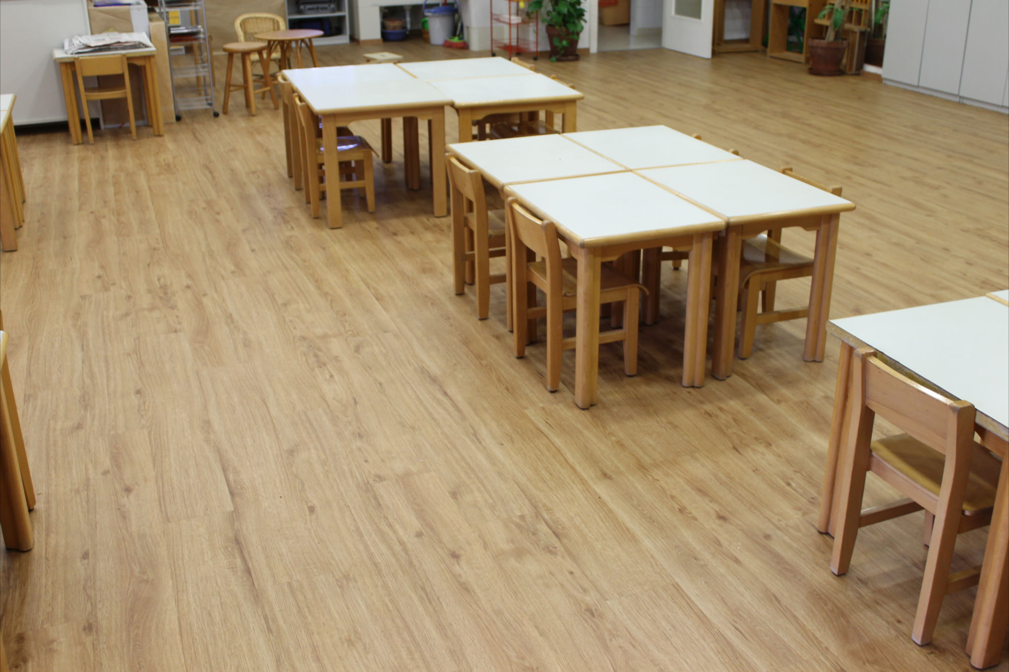 Este colegio optó por este suelo vinílico, por su resistencia a la abrasión, ya que necesitaban un producto que pudiera soportar los rayazos ocasionados por el entrar y salir del patio de arena a las clases.