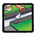 Las juntas entre dos rollos se pegan con la ayuda de una cinta especial de encolado. Debes poner la cinta en el centro de las juntas dobladas, con el lado basto hacia arriba. Es aconsejable fijar la cinta clavándola con clavos galvanizados por el inicio, centro y final.