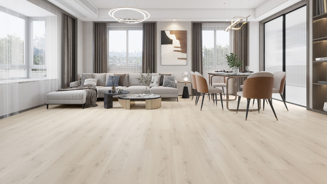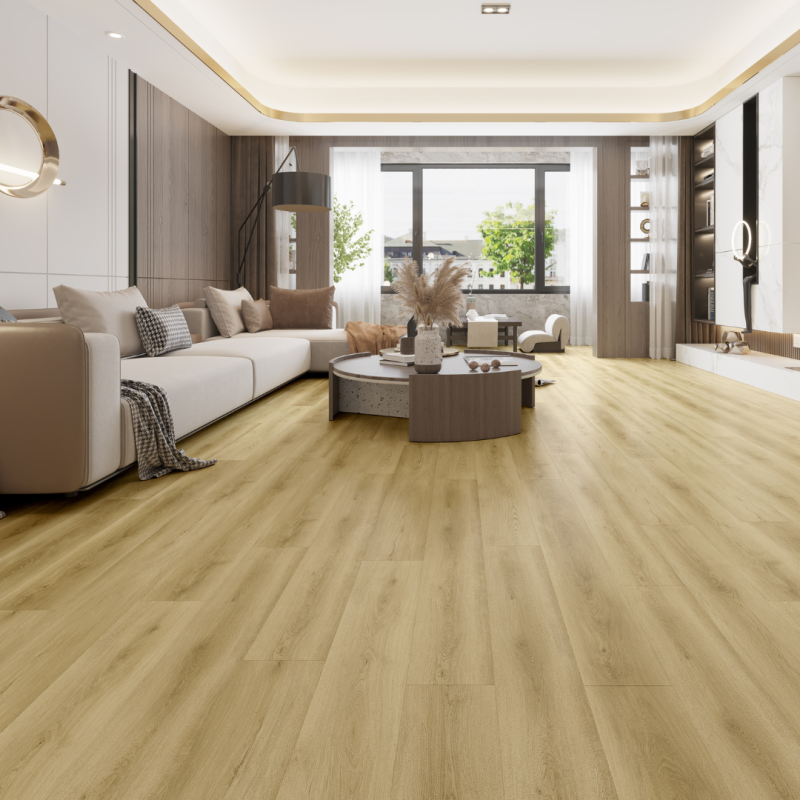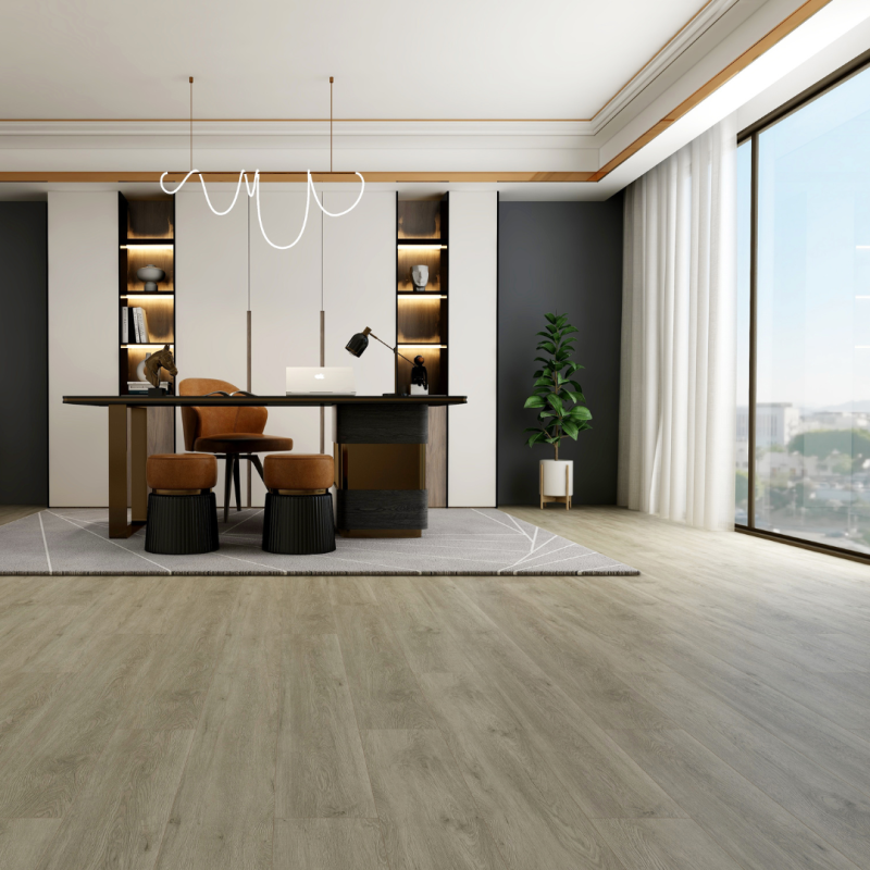 El suelo de SPC ofrece una estabilidad dimensional superior gracias a su núcleo rígido de piedra y polímero, resistiendo variaciones de temperatura, humedad y carga sin deformarse.