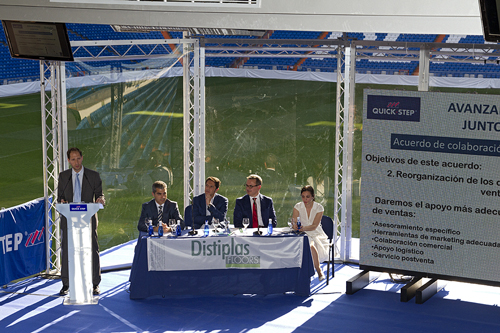 El estadio Santiago Bernabéu fue el espectacular marco elegido para explicar a sus clientes el acuerdo de distribución exclusiva de todos los productos de Quick-Step entre Quick Step y Distiplas Floors en el mercado español. El resultado de esta colaboración entre ambas compañias mejora el posicionamiento de la marca en el mercado, especialmente a nivel profesional y supondrá un gran apoyo a los puntos de venta oficiales como el suyo, abriendo una nueva etapa de colaboración aún más estrecha simbolizada el eslogan: “Avanzando juntos”.