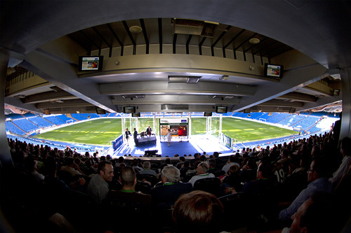 El coliseo blanco se quedó pequeño el 9 de mayo para acoger a las 450 personas de más de doscientas empresas, en su gran mayoría puntos de venta de Quick-Step de toda España, que acudieron al acto. En el antepalco del estadio se había organizado una exposición de los pavimentos laminados, parquet y suelos vinílicos de esta marca internacional. El acto se inició en el palco de honor. Iván García-Milla, director general de Distiplas Floors; Juan Fernández, responsable de ventas para España, entre otro países, de Quick-Step, y Esther Rioboo, responsable del departamento de Marketing de Distiplas, se explicaron las actividades y proyectos de sus compañías, la filosofía y valores que impulsa nuestra labor, y las posibilidades de la nueva etapa que se abre a partir del acuerdo de distribución exclusiva en España de Quick-Step por parte de Distiplas Floors.
