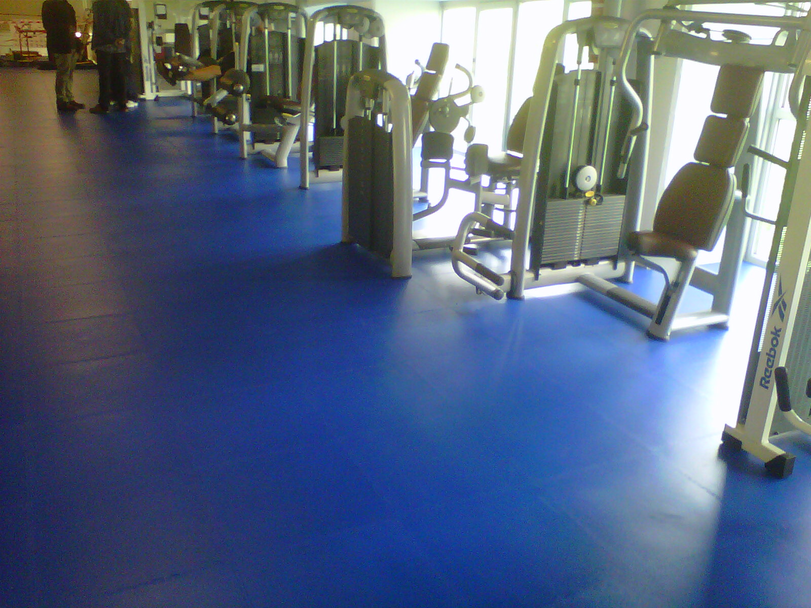 Instalación de 295 mtr de Flexi Tile Azul 5mm  en la zona de musculación del complejo deportivo de Club del Mar de la Coruña.