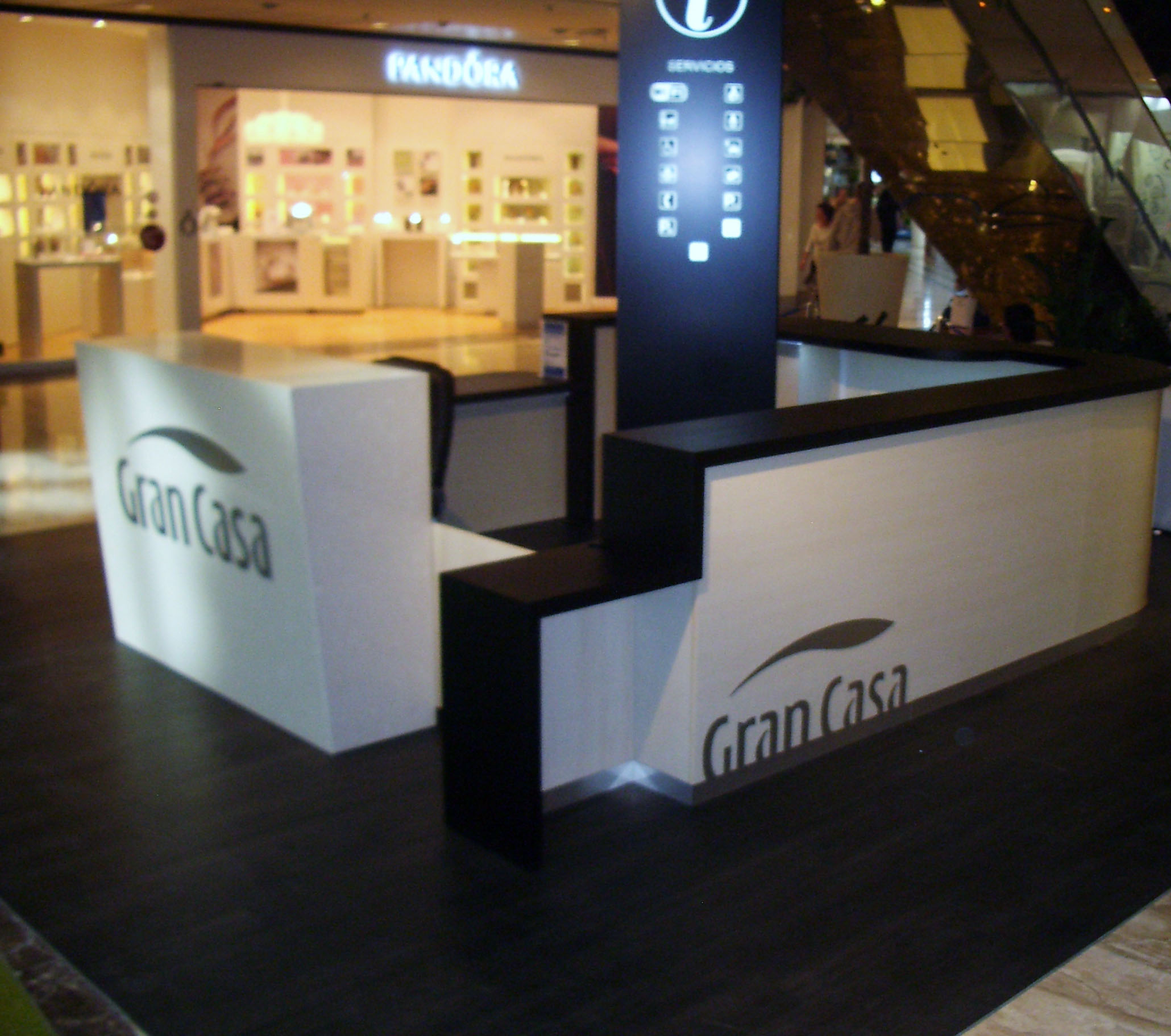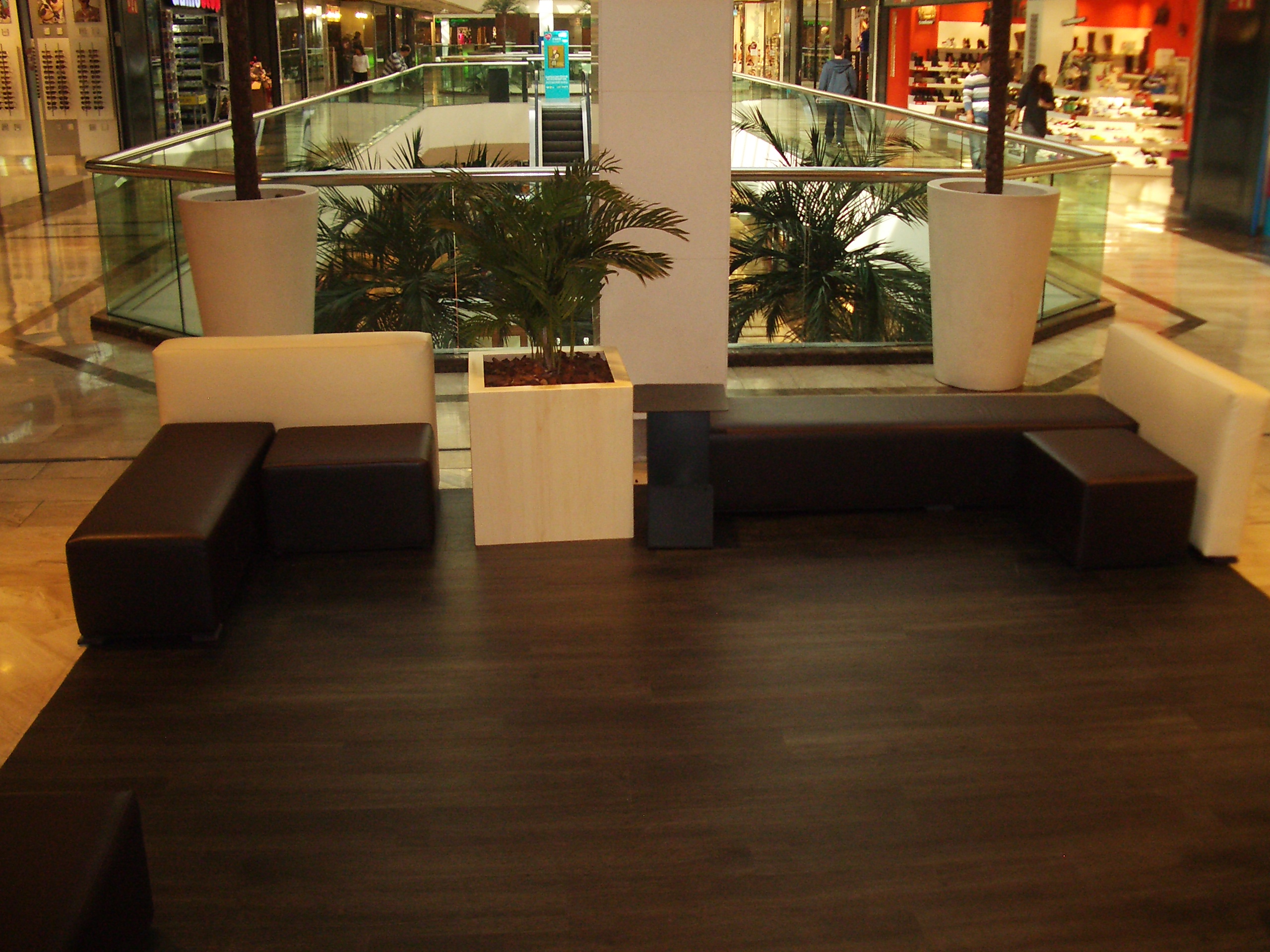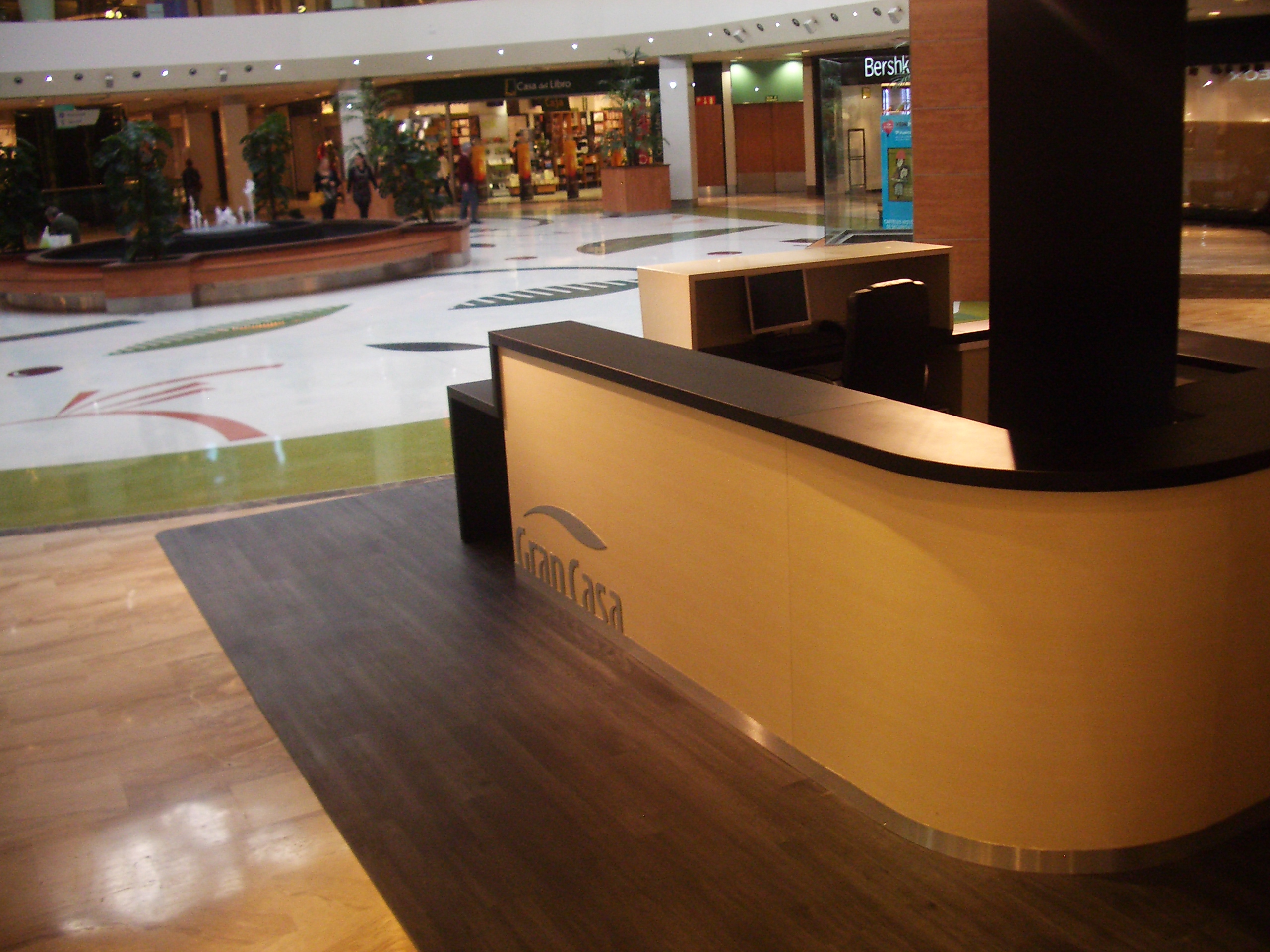 Instalación de Liberty Clic ref. Carbone 5565 04 en el centro comercial Gran Casa, este es uno de los centros comerciales más importantes de Zaragoza, el suelo se colocó en dos zonas de descanso y en el «punto de información» de dicho C.C.