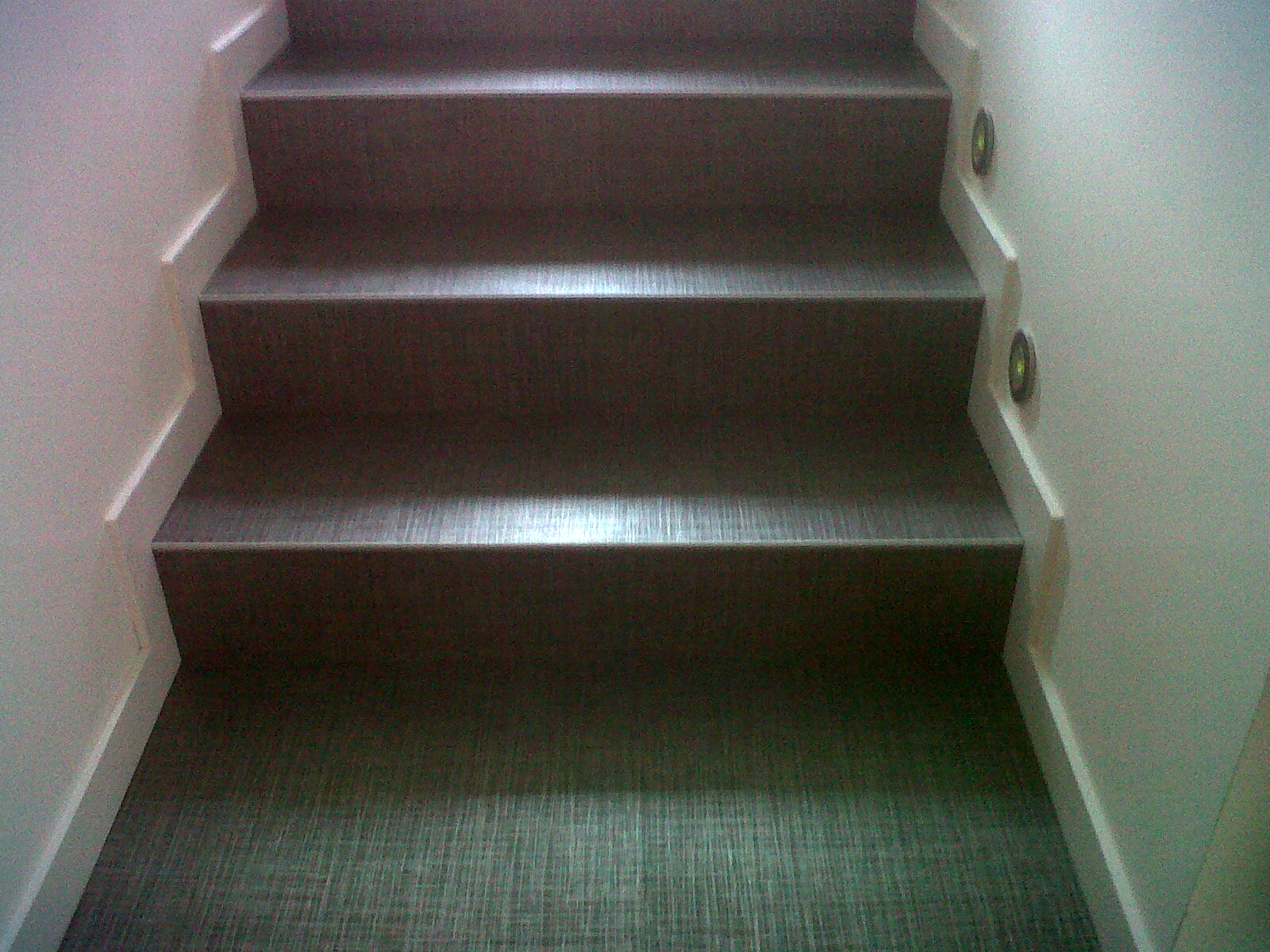 en escaleras es una mayor absorción acústica, continuidad en el diseño y comodidad en el mantenimiento de las escaleras, además al ser un material de instalación fácil, si alguna vez hay que reemplazarlo debido al deterioro por el uso solo habría que levantarlo y volver a fijar el nuevo.