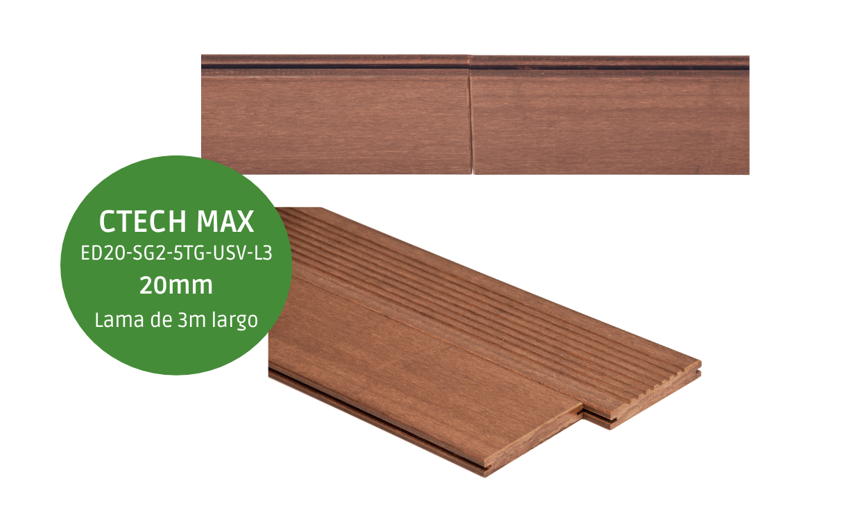 Se posiciona como la mejor opción para todas las aplicaciones exteriores, cuyo alcance del uso abarca muchos proyectos comerciales y residenciales en todo el mundo. Solo se necesitan dos tipos de lamas para su aplicación exterior. Una lama de ranura unilateral (G1), que se utiliza como la inicial y final y el resto está formado por lamas de ranura bilateral (G2). Todas las lamas se conectan con la estructura de machihembrado de testa para unirlas perfectamente.