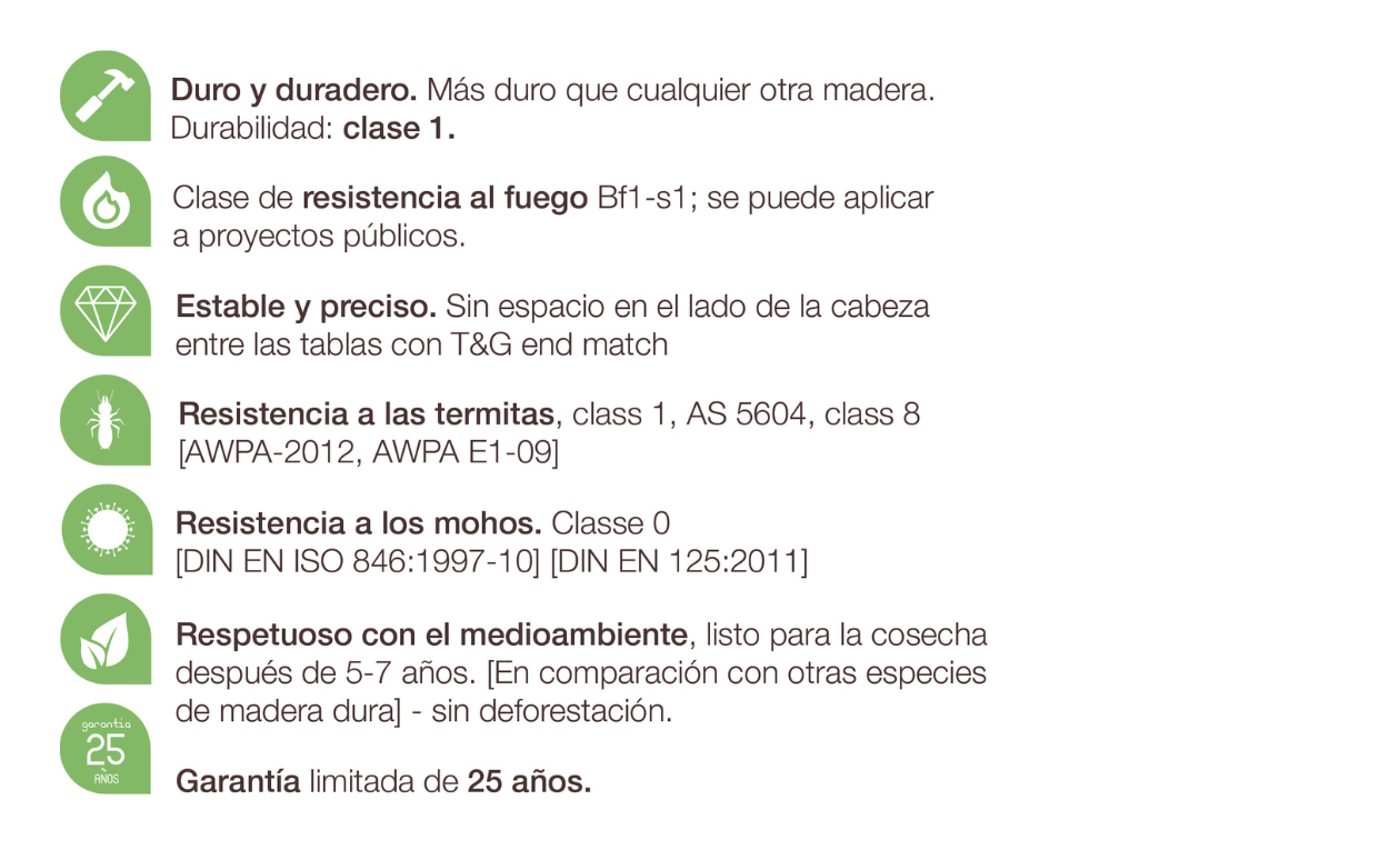 Se procesa a partir de bambú renovable. La implementación de la tecnología patentada CeramiX garantiza una excelente calidad, alta durabilidad, resistencia al fuego y estabilidad. Con una gran longitud de 3050 mm, de gama alta y atmosférica, ofrece la posibilidad de elegir entre la superficie ranurada y plana. Adecuada para el paisaje al aire libre, piscinas y otros lugares comerciales o residenciales.